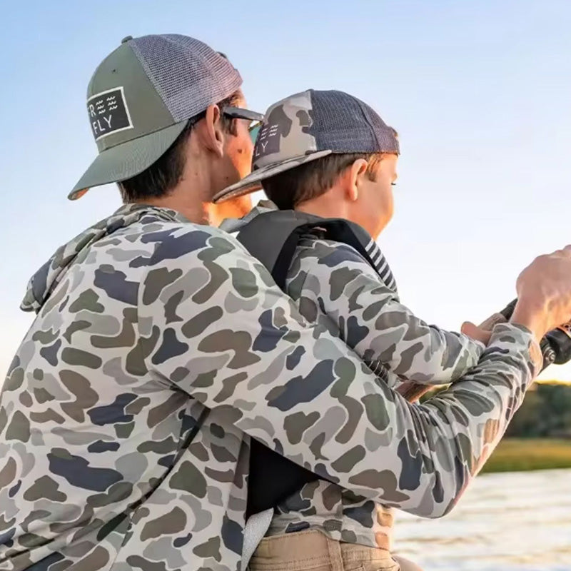 Built for brands, retailers, and tackle shops sourcing lightweight fishing hoodies for Q1 restock. This unisex performance pullover keeps the profile clean and technical, with a printed camo look that fits fly, boat, and inshore assortments while staying easy to merchandise as a core sun-hoodie layer.